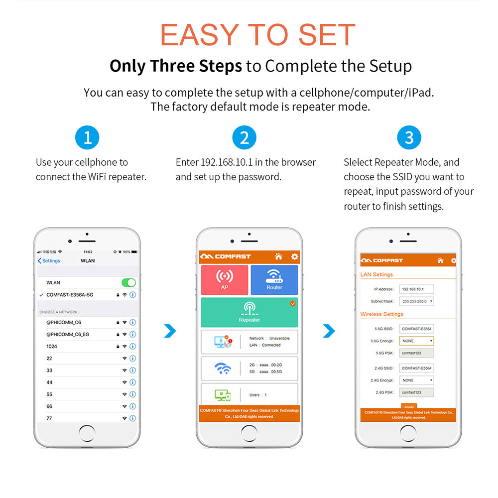 1 You can configure the Wi-Fi extension mode of this device using a wireless device such as a smartphone or laptop!