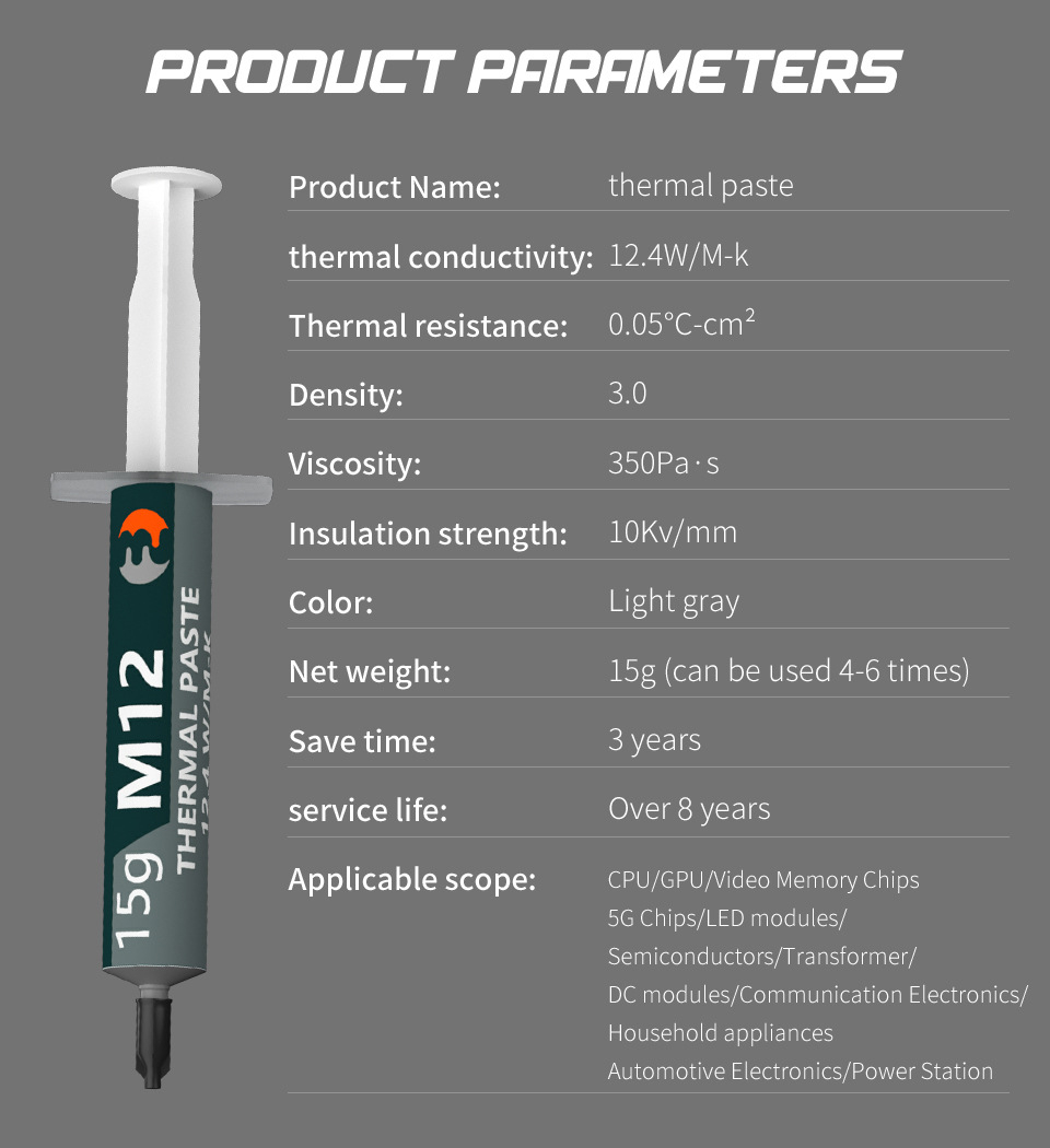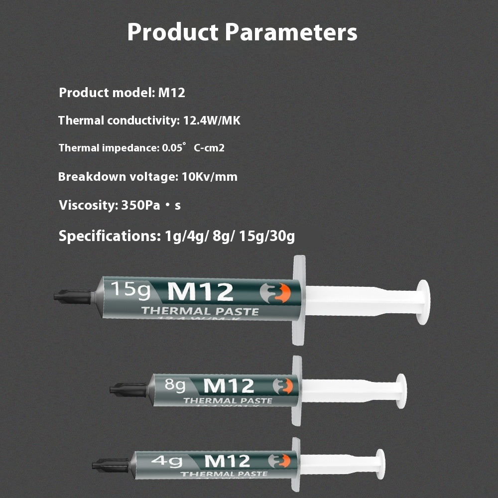 Product information: Color: M12 1G Applicable object: CPU Type: cooling silicone paste